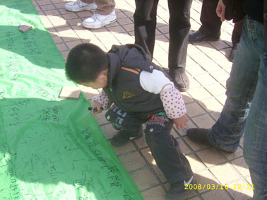 3月16日,為倡議有車族參與本活動,加強對廢油液排放的監(jiān)督,來自奧吉娜、東北大學、沈陽大學、中國醫(yī)大的環(huán)保志愿者組成了近千人的宣傳隊,在桃仙機場、北方圖書城、卓展商場、每家瑪、家樂福金牛店、麥德龍展開了宣傳。上午10時,活動現(xiàn)場設(shè)置了“支持回收車用廢棄油液-利國利民利已利后世”條幅和巨幅“迎奧運天藍水清地綠-車用廢棄油液回收活動之沈城十萬駕車者聯(lián)合簽名”錦旗,志愿者現(xiàn)場講解車用油液對環(huán)保的危害,倡議有車人士對隨意排放現(xiàn)象進行監(jiān)督。活動得到有車族的積極響應(yīng)與大力支持,不到半天,已有近萬名應(yīng)倡者在錦旗上簽名,從中可以看出沈陽市民迎接奧運的熱情和對和諧社會的向往,體現(xiàn)了沈陽市民普遍具有較強的環(huán)保意識和責任感。