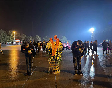 奧吉娜集團總裁魏國平博士選派員工赴韶山沖,代表奧吉娜集團向紀念毛澤東銅像敬獻挽聯花籃祭拜偉人,