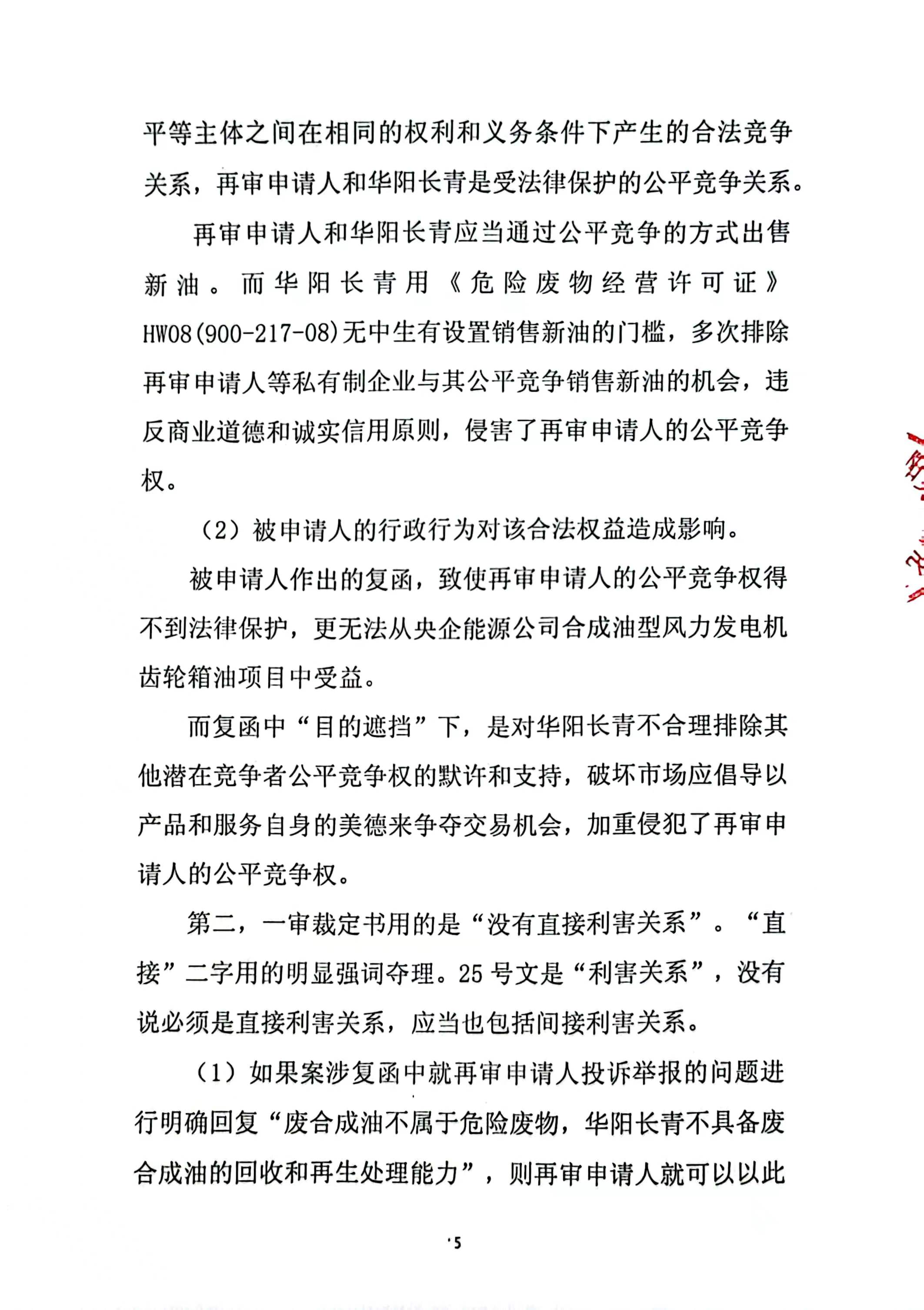 中國風電潤滑油民營企業沈陽奧吉娜化工有限公司(下簡稱:奧吉娜公司或上訴人)訴信陽市生態環境局(被上訴人)和第三人華陽長青投資有限公司(下簡稱:華陽長青公司)行政訴訟案,河南省信陽市中級人民法院于2024年4月2日作出二審行政裁定:駁回上訴,維護原裁定。