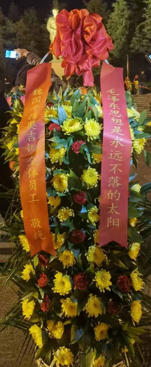 奧吉娜集團總裁魏國平博士特選派員工赴韶山沖,代表奧吉娜集團向紀念毛澤東銅像敬獻花籃祭拜偉人,表達奧吉娜人對這位偉人最崇高的敬意和最深切的懷念。
