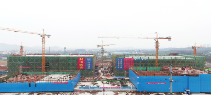 時不我待,只爭朝夕。11月以來,項目組成員腳步越來越快,瞄準目標、聚力攻關(guān),始終堅持高起點籌劃、高標準要求,緊緊把握“黃金”時間,協(xié)同合作,一層一層地按節(jié)點高質(zhì)量推進工程建設(shè)。11月30日,模塊廠房完成主體結(jié)構(gòu)封頂,該廠房地下有一層、地上有四層,總建筑面積約42340平方,建筑高度23.5米。此外,項目另兩棟關(guān)鍵廠房也進展順利,中試廠房已進入三層施工,芯片廠房預計12月15日完成主體結(jié)構(gòu)封頂,進度均比年度計劃提前約20天。