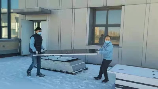 電科能源(18所)檢測(cè)中心職工不畏風(fēng)雪搶抓任務(wù)進(jìn)度,面對(duì)客戶希望將電站組件送樣進(jìn)行戶外性能和老化測(cè)試的要求,檢測(cè)中心骨干黨員身體力行,帶領(lǐng)團(tuán)隊(duì)頂風(fēng)冒雪,爭(zhēng)分奪秒進(jìn)行戶外測(cè)試。