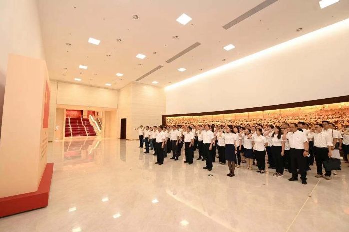 7月6日,中國電科黨組書記、董事長陳肇雄帶領黨組成員、總部各部門負責同志、在京二級成員單位黨委班子成員、一線先進典型和黨員干部代表,前往中國共產黨歷史展覽館,集體參觀“‘不忘初心、牢記使命’中國共產黨歷史展覽”,并重溫入黨誓詞,從百年黨史中汲取強國強軍的磅礴力量。