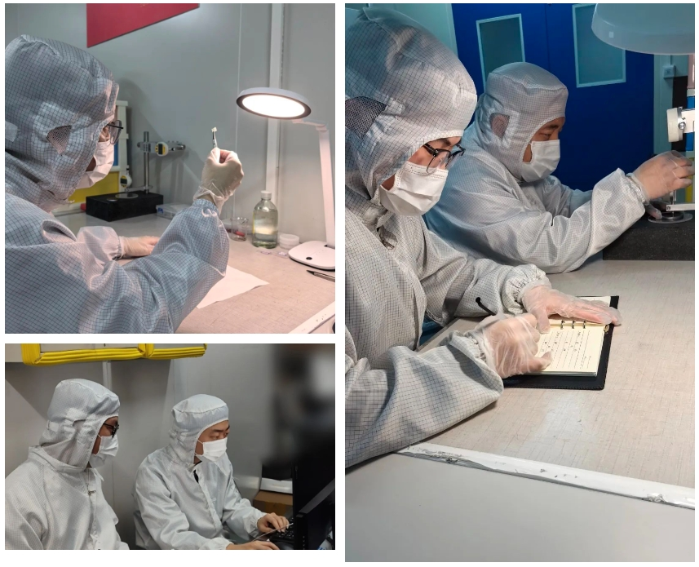 團隊成員積極響應布局和號召,敢立“軍令狀”,勇挑“千斤擔”,敢啃“硬骨頭”。在凈化廠房,設備儀器不停地運轉,無論是周末還是晚上,都可以看到團隊成員忙碌的身影。大家耐心、專注地進行試驗,以只爭朝夕、時不我待的緊迫感和使命感,嚴謹對待每一個樣品、每一次測量和每一次試驗規律的探尋。大家斗志昂揚,在失敗中總結經驗教訓,挖掘試驗現象下的本質問題,經過一次次的磨練,團隊分析問題、解決問題的能力不斷提升,金剛石器件研究邁入國際領先行列,取得了顯著成果。